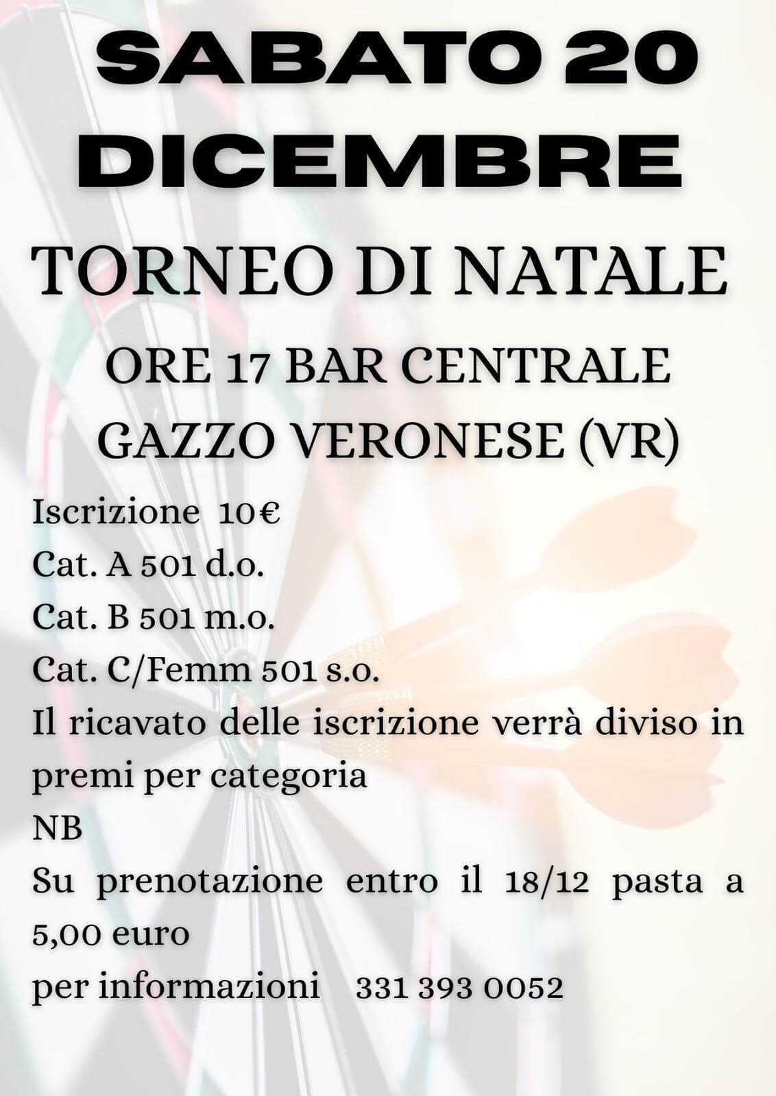 | 20.12.2025 17:00 | Torneo i Natale | Soft Dart - Torneo Singolo | Bar Centrale | Bar Centrale | 20.12.2025 | Cat ACat BCat C/FemmSu prenotazione pasta a euro 5,00 | autoffsedevale@libero.it | 3313930052 | Torneo i Natale |